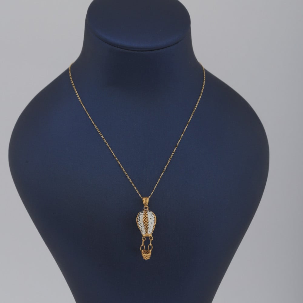 عقد ذهبي عيار 18 بسيط وأنيق، مصمم بأنامل مبدعة تجمع بين روعة الذهب التي تضفي سحراً خاصاً على التصميم. تضفي لمسة من الأناقة والفخامة، مما يجعله قطعة مميزة تبرز جمال وأناقة صاحبتها في أي مناسبة.