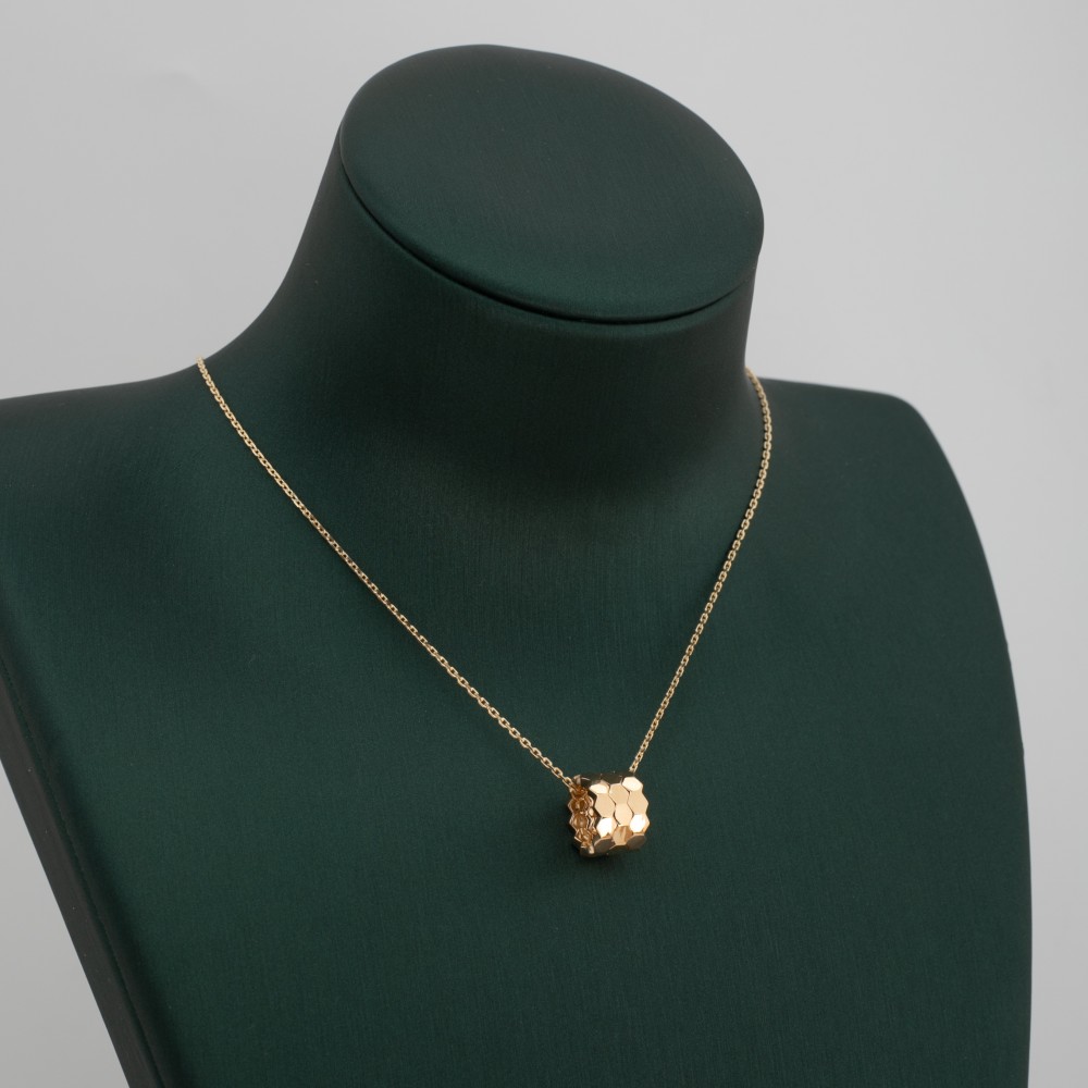 عقد ذهبي عيار 18 بسيط وأنيق، مصمم بأنامل مبدعة تجمع بين روعة الذهب التي تضفي سحراً خاصاً على التصميم. تضفي لمسة من الأناقة والفخامة، مما يجعله قطعة مميزة تبرز جمال وأناقة صاحبتها في أي مناسبة.