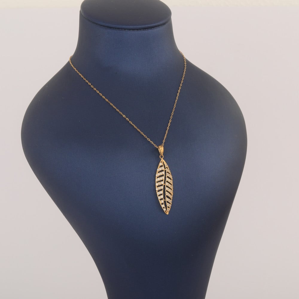 عقد ذهبي عيار 18 بسيط وأنيق، مصمم بأنامل مبدعة تجمع بين روعة الذهب التي تضفي سحراً خاصاً على التصميم. يتزين هذا العقد زريكون متلألئة تضفي لمسة من الأناقة والفخامة، مما يجعله قطعة مميزة تبرز جمال وأناقة صاحبتها في أي مناسبة.