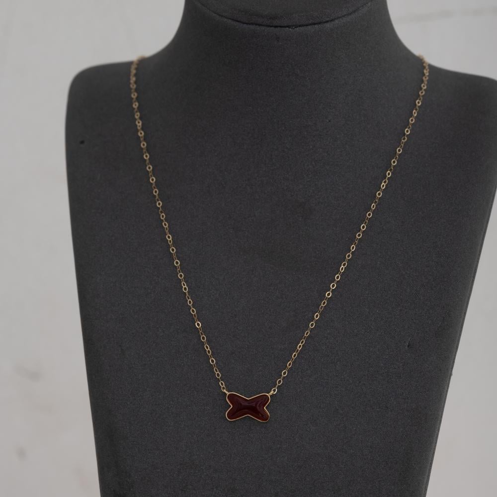 عقد ذهبي عيار 18 بسيط وأنيق، مصمم بأنامل مبدعة تجمع بين روعة الذهب التي تضفي سحراً خاصاً على التصميم. يتزين هذا العقد زريكون متلألئة تضفي لمسة من الأناقة والفخامة، مما يجعله قطعة مميزة تبرز جمال وأناقة صاحبتها في أي مناسبة.